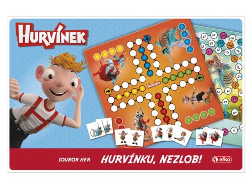 Užij si zábavu se souborem her HURVÍNKU, NEZLOB! Soubor obsahuje klasickou hru "Člověče, nezlob se!", společenskou hru "Vzhůru do oblak" a tradiční pexeso na rozstříhání - 32 dvojic obrázků postaviček z filmu.