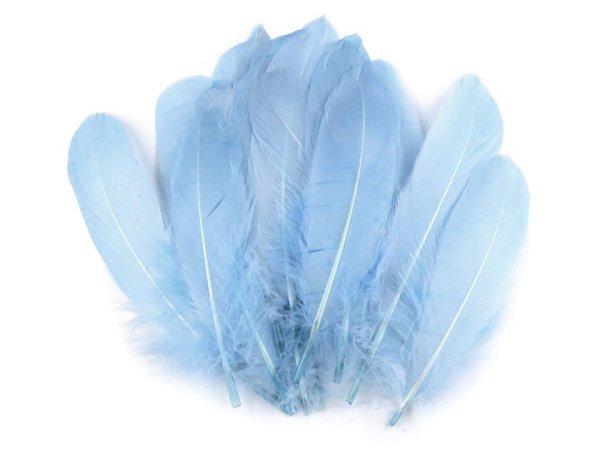 Husí peří délka 12-21 cm - modrá pomněnková (20 ks)