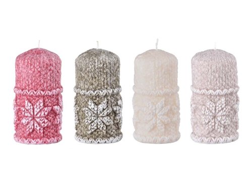 Tato kvalitní stearinová svíčka ve tvaru válce o rozměrech 70×125 mm zaujme krásným pleteným reliéfem doplněným o motiv hvězdy. Stearin zajišťuje čisté a rovnoměrné hoření, delší výdrž a elegantní, matný vzhled povrchu. Mix barevných variant umožňuje snazší sladění s ostatními zimními či vánočními dekoracemi. Svíčka je ideální na stůl, komodu, parapet nebo k vytvoření příjemné zimní atmosféry v jakékoli místnosti. Výborně se hodí také jako drobný sezónní dárek. Zboží je dodáváno v mixu. Doručované zboží je vybíráno náhodně a nelze vybrat konkrétní provedení.