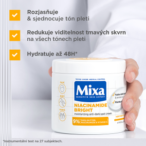 Hydratační krém proti tmavým skvrnám s jemným složením. Klinicky prokázaná redukce intenzity tmavých skvrn na obličeji, rukách i pokožce těla.