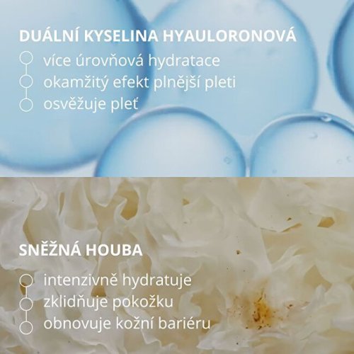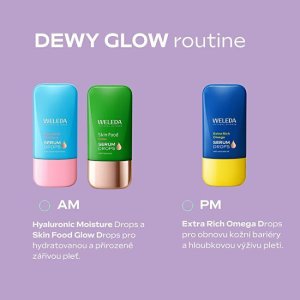 Hyaluronic Moisture Serum Drops poskytují 24hodinovou intenzivní a vícestupňovou hydrataci díky duální kyselině hyaluronové a Sněžné houbě. Fermentačně získaná kyselina hyaluronová ve středně a vysokomolekulární formě (0,2 %) působí v hlubších vrstvách i na povrchu pleti, čímž efektivně obnovuje její vlhkost a pružnost. Sněžná houba (Tremella fuciformis), bohatá na adaptogenní polysacharidy, napodobuje a posiluje účinek kyseliny hyaluronové, zklidňuje a podporuje regeneraci pokožky. Sérum je ideální pro dehydratovanou, unavenou pleť s oslabenou kožní bariérou. Okamžitě osvěžuje, zjemňuje a navrací pleti plnost a zdravý glow. Weleda Booster Serum Drops kombinují vysoce účinné rostlinné extrakty, inovativní aktivní látky a vědeckým výzkumem podložené složení, které se přizpůsobí vaší pleti přesně podle jejích aktuálních potřeb. Díky koncentrovanému složení je můžete snadno míchat, vrstvit nebo kombinovat pro dosažení cíleného efektu, ať už vaše pleť volá po hydrataci, zklidnění nebo prostě potřebuje dodat svěží glow!
