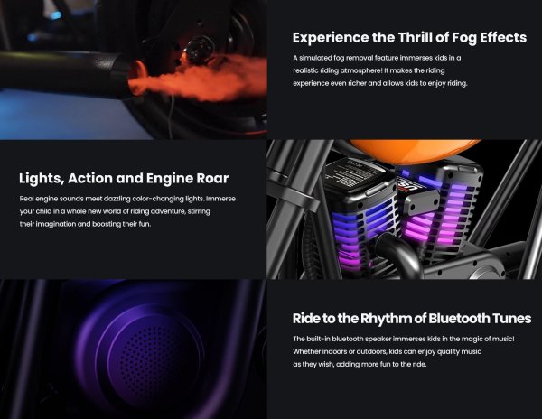 Pioneer 12 Plus Orange je dětská elektrická motorka inspirována vintage stylem, aby přinesla nevšední zážitek z jízdy. Kombinace podsvíceného a simulovaného zvuku motoru, efektu kouře z výfuku a přehrávání hudby pomocí Bluetooth umožňuje dětem pocítit skutečnou zábavu z jízdy.