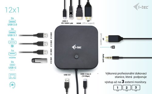 Profesionální dokovací stanice I-TEC USB-C Triple 4K Dock Pro kompaktních rozměrů, která je kompatibilní se všemi moderními notebooky i tablety s rozhraním USB-C a nabízí celou řadu dalších portů pro připojení periferních zařízení, a to včetně 4K monitorů. Je tak vhodná pro grafiky, tvůrce obsahu a další profesionály napříč obory. GLAN Ethernet podporuje vysokorychlostní sítě a poskytuje tak ultra rychlé připojení k internetu i přenos dat.