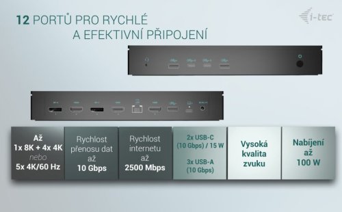 I-TEC Universal 5× 4K Display – rozšíří pracovní možnosti nejen s monitory Dokovací stanice I-TEC Universal 5× 4K Display je navržena pro efektivní práci se širokým spektrem periferních zařízení.