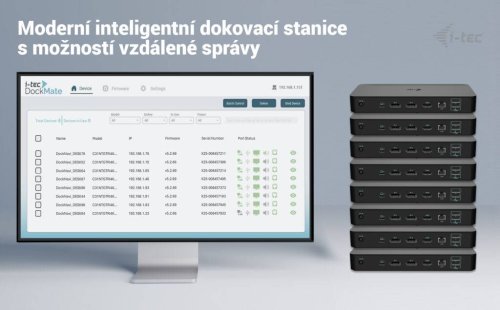 Tato pokročilá dokovací stanice představuje revoluci v dokovacích technologiích díky integrovaným funkcím vzdálené správy. S dedikovaným LAN portem mohou IT administrátoři spravovat dok odkudkoliv - dokonce až na úroveň jednotlivých portů. Software pro vzdálenou správu je dostupný jako volitelné rozšíření, prodává se samostatně. Správa funguje i bez připojení k hostitelskému zařízení, stačí pouze napájení a připojení k firemní síti.