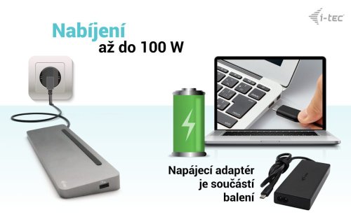 Kromě toho máte k dispozici také velký počet portů USB nebo slot pro microSD a SD karty. Bez problémů tak připojíte velké množství periferních zařízení, a ještě si užijete vysokorychlostní přenos dat. Extrémně výkonná dokovací stanice i-tec USB-C Metal podporuje také vysokorychlostní připojení k síti. Pro připojení sluchátek nebo externích reproduktorů vám poslouží kombinovaný 3,5mm audio konektor. Součástí balení je také univerzální napájecí adaptér USB-C s výkonem 100 W.