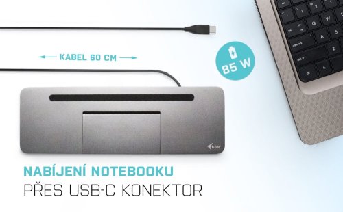 Dokovací stanice I-TEC USB-C Metal Ergonomic 4K Dock 85 W je kompatibilní s notebooky, smartphony a tablety s rozhraním USB-C a Thunderbolt. Je navržena s ohledem na všestranné použití a primárně stačí jen volný port, který dokáže přenášet video signál. Díky početné nabídce konektorů pohodlně připojíte klávesnici, myš, tiskárnu nebo třeba externí disk, přičemž celý proces je rychlý a jednoduchý.