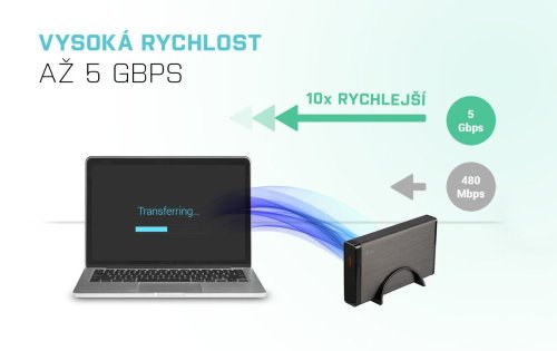 USB 3.0 Advance Black HDD je externí rámeček pro všechny 3.5" SATA I, II, III pevné disky. Připojení přes USB 3.0 nabízí rychlý a snadný přenos dat (až 5 Gbps). Samozřejmostí je zpětná kompatibilita s USB 2.0 či 1.1. Pevná hliníková konstrukce rámečku zajišťuje účinný odvod tepla a ochranu pevného disku. Součástí balení je i stojan, rámeček tedy můžete mít postaven ve vertikální poloze a šetřit místo na pracovním stole.