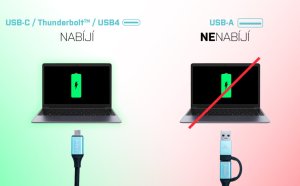 Požadavky pro funkci Power Delivery: • Zařízení s volným USB-C, USB4 nebo Thunderbolt™ 3 portem s podporou „Power Delivery“