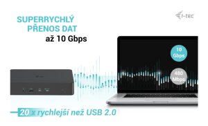 • Dostatek portů USB (dva porty USB-C podporují rychlost Gen 2 až 10 Gb/s), spolehlivé a rychlé připojení k firemní síti díky integrovanému portu LAN a podpora instalace za monitor, to vše dělá z této dokovací stanice ideálního společníka pro opravdové profesionály. Samozřejmě podporuje nabíjení notebooku nebo tabletu, a to až do výkonu 100 W.