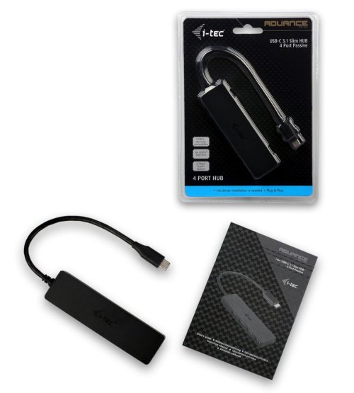 USB hub pro notebooky, tablety a smartphony s konektorem USB-C nebo Thunderbolt 3 nabízí rozšíření o čtyři porty USB 3.0. Hub má vestavěnou přepěťovou ochranu pro případ zkratu na periferních zařízeních. Zařízení je kompatibilní s běžně používanými operačními systémy Windows, Mac OS, Android a Chrome.