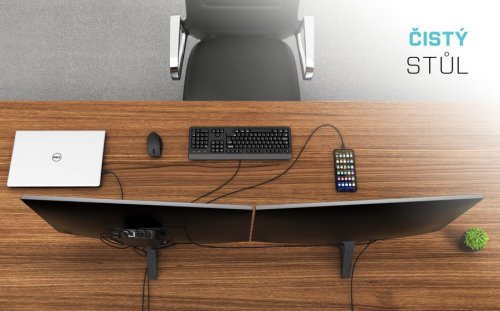 Kancelářská dokovací stanice USB-C, která podporuje až 2x externí monitor v rozlišení 4K. Stanice je kompatibilní s jakýmkoliv notebookem vybaveným portem USB-C nebo Thunderbolt 3. 6x USB port, spolehlivé a rychlé připojení do podnikové sítě díky integrovanému LAN portu a podpora instalace za monitor, to vše z této dokovací stanice dělá ideálního společníka pro profesionály. Samozřejmostí je podpora nabíjení vašeho notebooku či tabletu, a to až 100W (napájecí adaptér je přiložen).