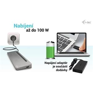 I-tec USB-C Metal Ergonomic 3x 4K Display Docking Station with Power Delivery 100 W + i-tec Universal Charger 100 W