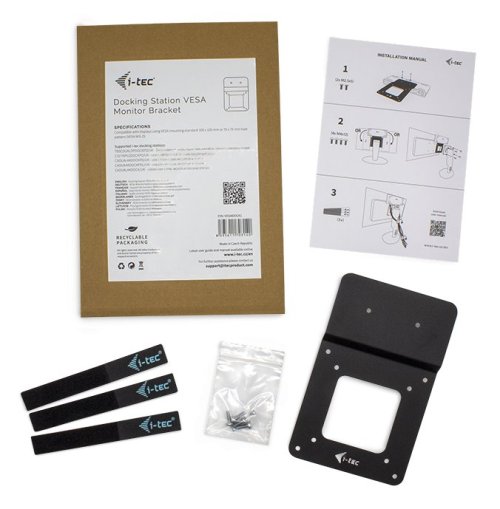 VESA držák z pevného a odolného kovového materiálu pro uchycení dokovací stanice jak ve vertikální, tak horizontální poloze.