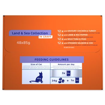 Kompletní krmivo pro dospělé kočky. Krmný návod: kočkám o hmotnosti 4 kg podávejte přibližně 3 kapsičky za den rozdělené nejméně do 2 krmných dávek. Vaše kočka může jíst více nebo méně v závislosti na věku, temperamentu a aktivitě.