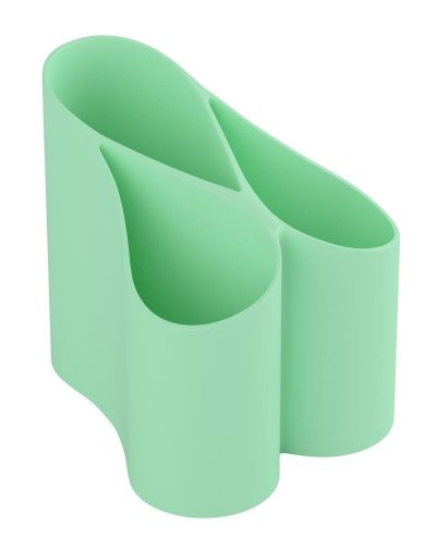Stojánek na psací potřeby z pevného plastu. 3 stejně velké přihrádky. Rozměry: 10,5 x 11,0 x 12,5 cm