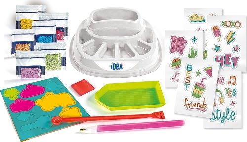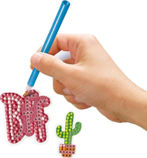 Sada Sparkly Creations Pop Style s drobnými diamanty pro vytváření zářivých a barevných samolepek. Nanášejte 3D drahokamy přiloženým perem a tvořte samolepky s originálním a zábavným designem. Moderní a kreativní aktivita pro zlepšení soustředění. Originální a zábavné ilustrace s herní tematikou. Jednoduchá technika tvoření, kterou zvládne každý. Speciální pero umožňuje přesné nanášení drahokamových kamínků. Praktický stojan pro přehledné uspořádání všech pomůcek a pro snadné přenášení. Podporuje manuální zručnost, je vhodná i pro relaxaci. Obsahuje: Pracovní stojánek se zásobníkem na kamínky, šest sáčků s diamanty, aršíky se samolepkami, lopatka na kamínky, miska, aplikační pero, vosk, tvarované papírové podložky pro připevnění samolepek, obrázkový návod Diamantové malování - postup: Vyberte si samolepku, kterou chcete ozdobit. Obrázek je potažen lepidlem, na který se aplikují diamantové kamínky. Diamanty vysypejte do misky. Do hrotu pera naberte vosk, díky kterému se kamínky snadno přichytí na pero. Kamínky perem nanášejte na obrázek dle barevné legendy nebo dle vlastní fantazie.