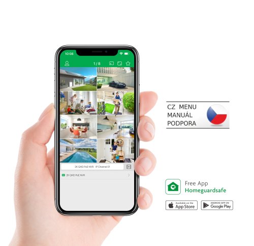 Snadné nastavení a podpora hlasového ovládání Nastavení probíhá v několika jednoduchých krocích dle manuálu, který je kompletně v českém, slovenském a anglickém jazyce. Obraz z kamer je možné sledovat na počítači, smartphonu a tabletu. Pro mobilní zařízení jsou podporovány systémy Android a iOS, pro počítač pak Windows a MacOS. Velmi snadné je rovněž nastavení mobilního přístupu pomocí oskenování QR kódu do smartphonu/tabletu, propojení je hotové během několika vteřin. Systém podporuje hlasové ovládání Google Assistant a Amazon Alexa.
