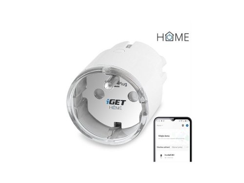Chytrá zásuvka ovládaná přes WiFi, kompatibilní s aplikací iGET HOME, Google Assistant a Amazon Alexa, měření spotřeby energie, max. zatížení 3680 W, aplikace pro Android a iOS zdarma v češtině, nastavení časovačů, statistiky. Podpora Home Assistant.