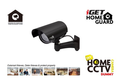 Tato velmi kvalitně zpracovaná atrapa bezpečnostní kamery iGET HOMEGUARD HGDOA5666 působí odstrašujícím účinkem na případné zloděje a vandaly. Černá barva - veškeré reálné kamery jsou v černé nebo bílé barvě, nikdy ne v barvě stříbrné. Přisvětlovací IR LED diody, červeně blikající LED dioda, reálná optika a masivní držák tak tvoří dokonalou imitaci zabezpečení. Instalace je opravdu jednoduchá, stačí vložit baterie a upevnit kameru na stěnu.