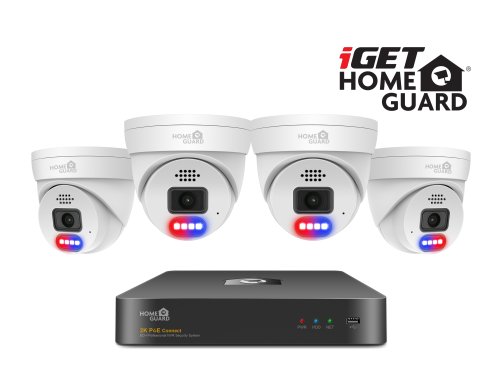 Kamerový systém iGET HOMEGUARD HGNVK84804 s rozlišením Super HD 2K (2560 x 1440), SMART detekcí pohybu, obousměrným přenosem zvuku, sirénami, a PoE napájením (pro napojení kamer k rekordéru se využívá univerzální Ethernet kabel Cat.5e, Cat.6 nebo vyšší) Po tomto kabelu prochází data i napájení kamer. 8-kanálový 2K rekordér NVR s PoE + 4ks 2K (4MPx, 2560 x 1440) PoE barevných venkovních kamer iGET HOMEGUARD HGNHK937CAM. Voděodolné kamery s IP66 krytím obsahují IR LED noční přísvit (dosah až 35m), LED světla pro barevné noční vidění (dosah až 25m), výstražné policejní LED majáky, mikrofon, reproduktor a sirénu pro výstrahu. Moderní komprese videa H.265, Gigabitový port RJ45 pro připojení k Internetu, pozice pro 1x HDD SATA (max. 10 TB), konektory 9x LAN, 2x USB, VGA, HDMI, Audio CINCH. Mobilní aplikace (Android/iOS) a PC (Windows/MAC) pro vzdálené online sledování + připojení k TV/monitoru. USB myš, varovné nálepky, manuál v CZ/SK/PL/EN. Podporuje ONVIF ver.2.6.
