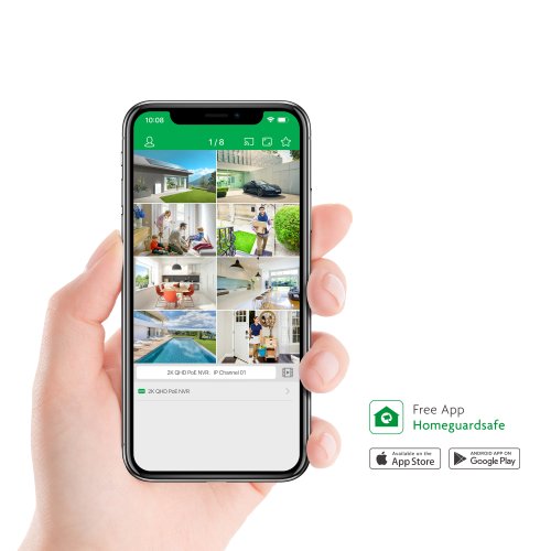 Přístup k online sledování a záznamů odkudkoliv Pomocí aplikace "Homeguardsafe" se snadno a rychle připojíte k veškerým záznamům i sledování online videa z kamer. Tato aplikace je dostupná pro veškeré smartphony a tablety s podporou Android a iOS. Pro přístup z počítače je možné použít program s podporou operačních systémů Windows a Mac. Díky podpoře protokolu P2P je přístup pomocí aplikací velmi snadný. Není nutné nastavovat otevřené porty na domácím routeru, nebo zřizovat veřejnou IP adresu. Stačí pouze připojení k Internetu a vše je plně funkční.