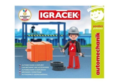 Ty a Igráček automechanik = šikovná dvojka. Vezmi šroubovák, trychtýř, kanystr, “francouzák” a vzhůru do opravování aut. Hračka rozvíjí jemnou motoriku a fantazii dětí. Legendární postavička od roku 1976. Vyrobeno v České republice.
