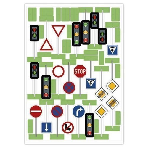 Dopravní značky vyrobené z kvalitní lepenky. Dopravní značky jsou doplněny návlekovými rukávy na "zhasínání" semaforů.
