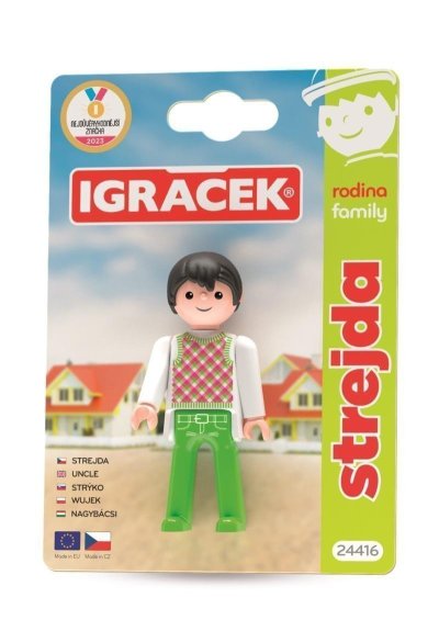 Se strejdou si hrajeme s autodráhou a chodíme na fotbal. Hra s Igráčky z edice RODINA pomáhá dětem rozvíjet sociální dovednosti a porozumění rodinným rolím. Legendární postavička od roku 1976. Figurka bez příslušenství. Vyrobeno v ČR.