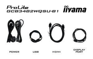 Obsah balení: Napájecí kabel, HDMI kabel, DisplayPort kabel, USB kabel, manuál