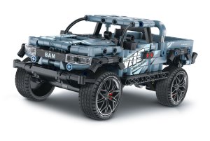 iM.Master Stavebnice auto s korbou. Rozměry 23,2x11x10,2 cm. 463 dílků. Na zpětné natažení. Otevírací dveře, fungující zadní tlumiče.