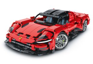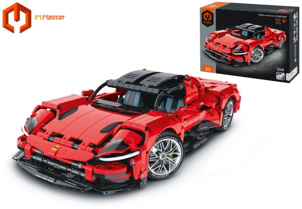 iM.Master Stavebnice auto sportovní červené. Rozměry 34,7x16,7x8,4 cm. 1131 dílků. Otevírací dveře. Bez efektů, baterií a ovladače.