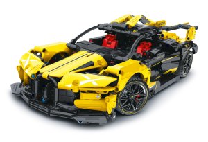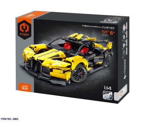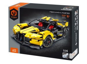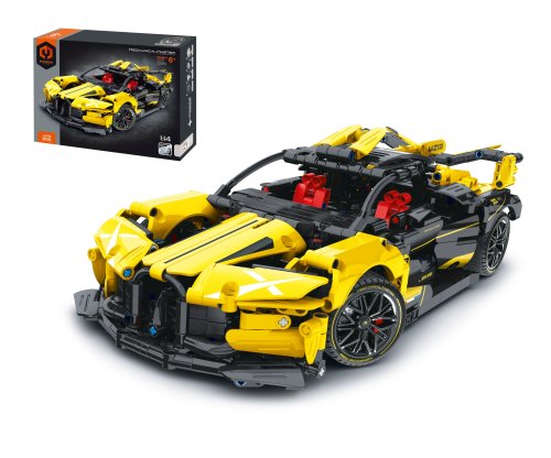 iM.Master Stavebnice auto sportovní žluté. Rozměry 33,6x15,7x10,2 cm. 1103 dílků. Otevírací dveře. Bez efektů, baterií a ovladače.
