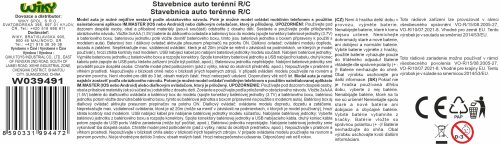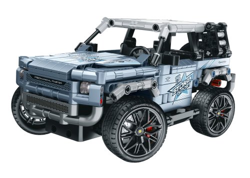 iM.Master Stavebnice auto terénní RC ovladač/aplikace. Rozměry 23x12x11,5 cm. 503 dílků. Možnost ovládat ovladačem nebo aplikací v mobilu pomocí bluetooth. Aplikace - standardní ovládání, polohovací ovládání, simulace volantu, navigování, programování. Frekvence 2.4GHz. Otevírací dveře, vyklápěcí žebřík, fungující tlumiče zadních kol. Dosah 20 m. 3.7V bateriový pack do auta součástí, 3xAAA baterie do ovladače nejsou součástí. USB kabel součástí. Přepínač ON/OFF na spodní straně auta a na ovladači.