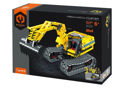 iM.Master Stavebnice bagr robot 2v1. Rozměry 31x14x16 cm. 342 dílků. Možnost postavit bagr nebo robota. Otáčecí základna a pohyblivé nabírací rameno.
