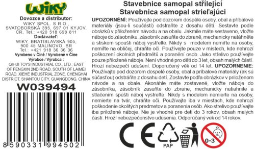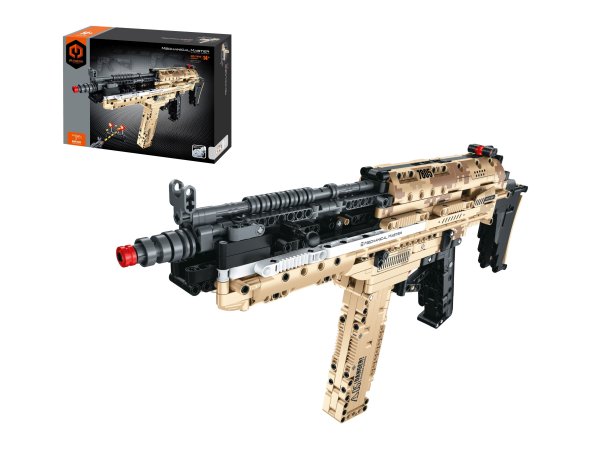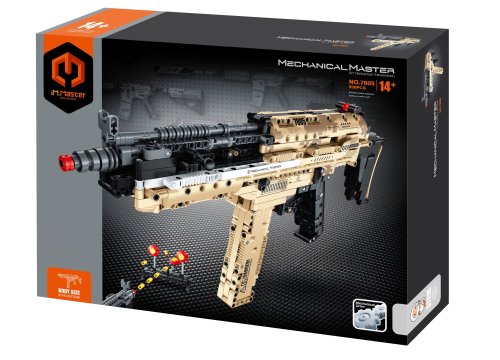 iM.Master Stavebnice kulomet střílející. Rozměry 47,4x7,3x27 cm. 939 dílků. Součástí 22 nábojů, terč. Pojistka spouště, náboje do zásobníku, natahovací nabíjení.