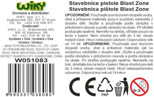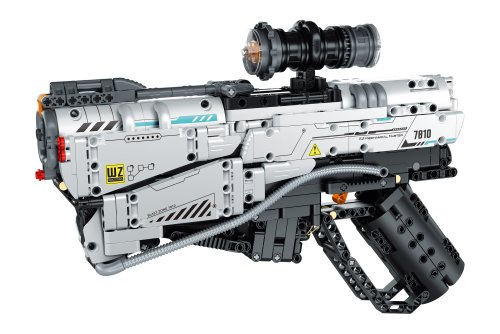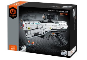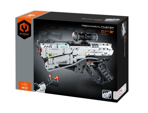 iM.Master Stavebnice pistole Blast Zone 7810. Rozměry 32,5x5,6x22 cm. 869 dílků. Součástí náboje a terč.