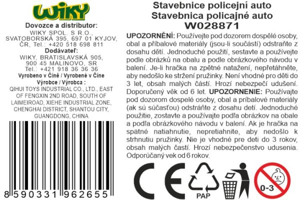 iM.Master Stavebnice Policejní auto. Velikost 16x10x11 cm. 199 dílků. Na zpětné natažení.