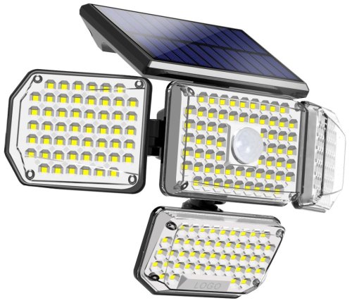 Venkovní LED reflektor s výkonem 4,5 W zajistí osvětlení venkovních prostor a budov v místech, kde není možný přívod elektrického proudu. Osvětlíte si například i příjezdovou cestu před garáží bez nutnosti sekání kabeláže do fasády domu. Reflektor pracuje ve 3 volitelných režimech a má tři pohyblivá ramena, díky kterým osvítí prostor před sebou, pod sebou i po stranách. Napájení je zajištěno solárním panelem, který během dne ukládá energii do 1200 mAh vestavěné baterie. Díky senzoru pohybu se světlo automaticky aktivuje i deaktivuje.
