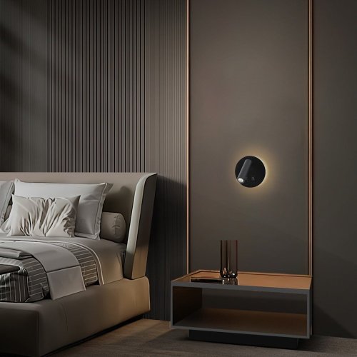 Nástěnné bodové LED svítidlo s výkonem 6 W a dvěma zdroji světla. Hlavní směrové světlo pro přímé osvětlení lze otáčet v rozsahu 330° a vyklápět o 90°, což umožňuje přesné zacílení tam, kde je potřeba. Jemné nepřímé kruhové světlo je ideální pro noční podsvícení. Světelné zdroje lze ovládat nezávisle na sobě pomocí dvou vypínačů umístěných na těle svítidla, což poskytuje maximální flexibilitu v osvětlení. Univerzálnost lampičky zvyšuje možnost instalace i na strop.
