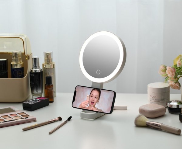 Kompaktní kosmetické zrcátko s flexibilním stojánkem, věrným osvětlením a dobíjecí baterií je perfektní pro každodenní líčení.