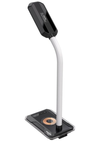 Stylová stolní LED lampička s RGB podsvíceným ohebným ramenem i základnou zvýrazní atmosféru herního prostředí. RGB osvětlení má navíc schopnost reagovat na zvuky, což přidává další úroveň interaktivity a zážitku z hraní. Samozřejmostí je možnost nastavení úrovně jasu a barvy světla. Lampička je vybavena bezdrátovou nabíječkou standardu Qi nabízející výkon 10 W a nabíjecím USB portem. Zařízení s podporou bezdrátového nabíjení se začne nabíjet při pouhém položení na nabíjecí plochu.