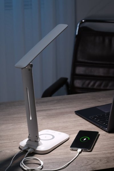 Multifunkční LED stolní lampa s integrovaným bezdrátovým nabíjením a USB výstupem pro moderní domácnost i kancelář.