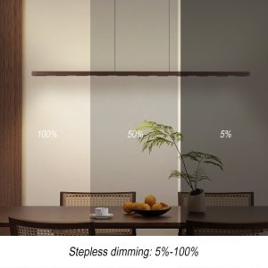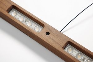Designové závěsné LED svítidlo kombinující přírodní ořechové dřevo s moderní technologií senzorového ovládání.