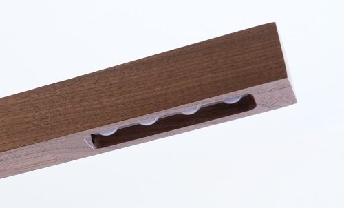 Konstrukce kombinuje přírodní ořechové dřevo s kovovými komponenty a zajišťuje dlouhodobou spolehlivost.