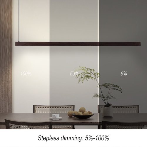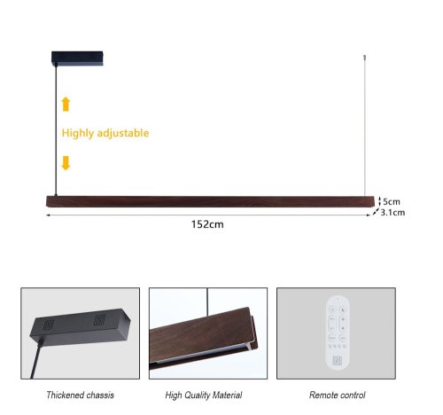 S délkou 152 cm a kombinací přímého a nepřímého osvětlení UP/DOWN vytváří ideální atmosféru v kuchyni, jídelně nebo obývacím pokoji. Ořechové dřevo s černou montáží dodává interiéru elegantní a moderní vzhled při zachování přírodního charakteru materiálu.