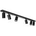 Série bodových svítidel PUNTO představuje kvalitní kovová svítidla v elegantním, matně černém provedení, která jsou ideální volbou pro funkční osvětlení současných interiérů. Svítidla mohou být instalována jako nástěnná i stropní, což zvyšuje jejich flexibilitu a univerzálnost. Šest směrových hlav je nerovnoměrně rozloženo na 119 cm dlouhé základně a díky pohyblivým kloubům lze světelné pruhy zacílit přesně tam, kde je potřeba. Osazeno je šesti paticemi GU10 pro instalaci žárovek o max. příkonu 6× 9 W. Hlavu svítidla lze pro snadnější instalaci žárovky odšroubovat. Součástí balení je sada zlatých kroužků, kterými lze upravit vzhled svítidla na černozlatý.
