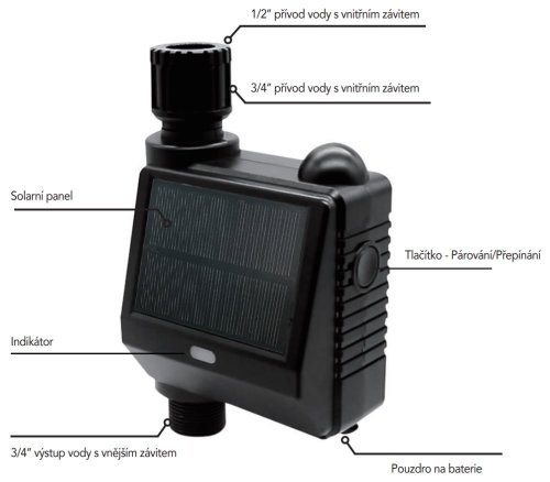 Ventil se solárním panelem pro vytvoření chytrého zavlažovacího systému. Prostřednictvím aplikace pro chytré telefony lze nastavovat zavlažovací cykly, rozsah průtoku a sledovat stav otevření ventilu. Napájení je řešeno dvěma AA bateriemi (nejsou součástí balení), které jsou dobíjeny pomocí vestavěného solárního panelu. Zařízení komunikuje na protokolu ZigBee 3.0. Bezplatná aplikace IMMAX NEO PRO je kompatibilní se systémy TUYA, Lidl a podporuje hlasové ovládání pomocí Google Assistant, Amazon Alexa a Apple Siri. Součástí balení je také bezdrátové čidlo, které v reálném čase monitoruje teplotu a vlhkost půdy.
