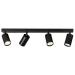 Série bodových svítidel PUNTO představuje kvalitní kovová svítidla v elegantním, matně černém provedení, která jsou ideální volbou pro funkční osvětlení současných interiérů. Svítidla mohou být instalována jako nástěnná i stropní, což zvyšuje jejich flexibilitu a univerzálnost. Čtyři směrové hlavy jsou rozloženy na 59 cm dlouhé základně a díky pohyblivým kloubům lze světelné pruhy zacílit přesně tam, kde je potřeba. Osazeno je čtyřmi paticemi GU10 pro instalaci žárovek o max. příkonu 4× 9 W. Hlavu svítidla lze pro snadnější instalaci žárovky odšroubovat.