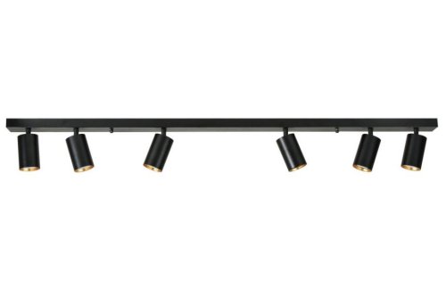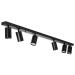 Série bodových svítidel PUNTO představuje kvalitní kovová svítidla v elegantním, matně černém provedení, která jsou ideální volbou pro funkční osvětlení současných interiérů. Svítidla mohou být instalována jako nástěnná i stropní, což zvyšuje jejich flexibilitu a univerzálnost. Šest směrových hlav je nerovnoměrně rozloženo na 119 cm dlouhé základně a díky pohyblivým kloubům lze světelné pruhy zacílit přesně tam, kde je potřeba. Osazeno je šesti paticemi GU10 pro instalaci žárovek o max. příkonu 6× 9 W. Hlavu svítidla lze pro snadnější instalaci žárovky odšroubovat.